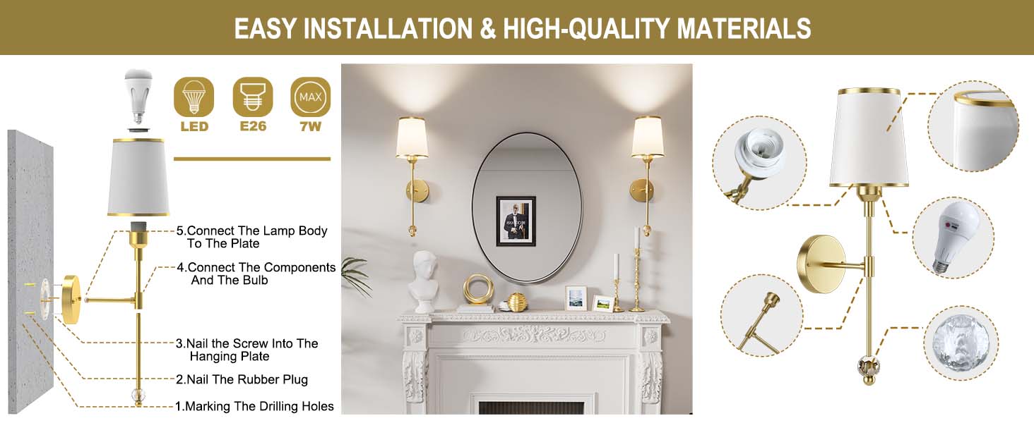 No electrician or wire handling needed—install with included screws and accessories. Save time and cost while adding decor to your room quickly.